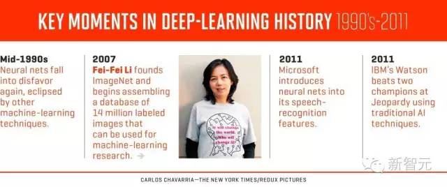 深度學(xué)習(xí)歷史關(guān)鍵點:2007年李飛飛創(chuàng)立ImageNet;2011年微軟將神經(jīng)網(wǎng)絡(luò)引入語音識別;同樣2011年IBM Watson贏得Jeopardy冠軍。