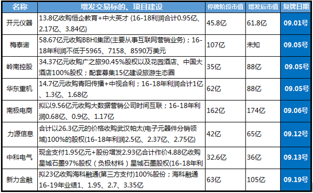 9月份主要復(fù)牌增發(fā)公告篩選內(nèi)容